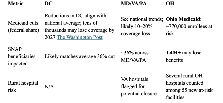 • Ohio: 55 additional independent hospitals facing insolvency by 2026.
